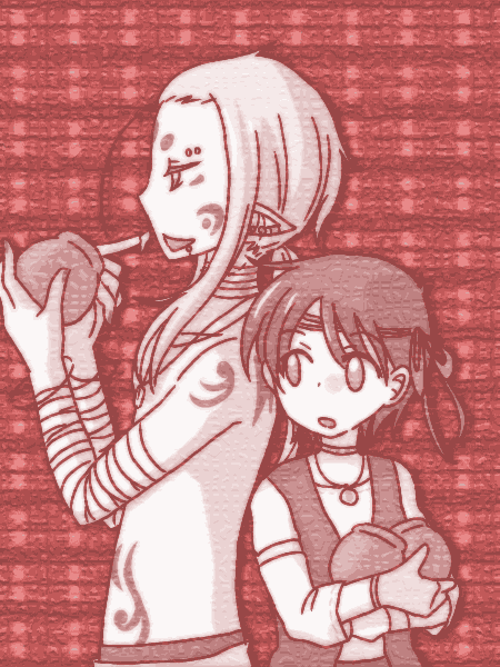 シャーヤールちゃんを愛でるヒィとそれに嫉妬するピポ(水のルフ)。